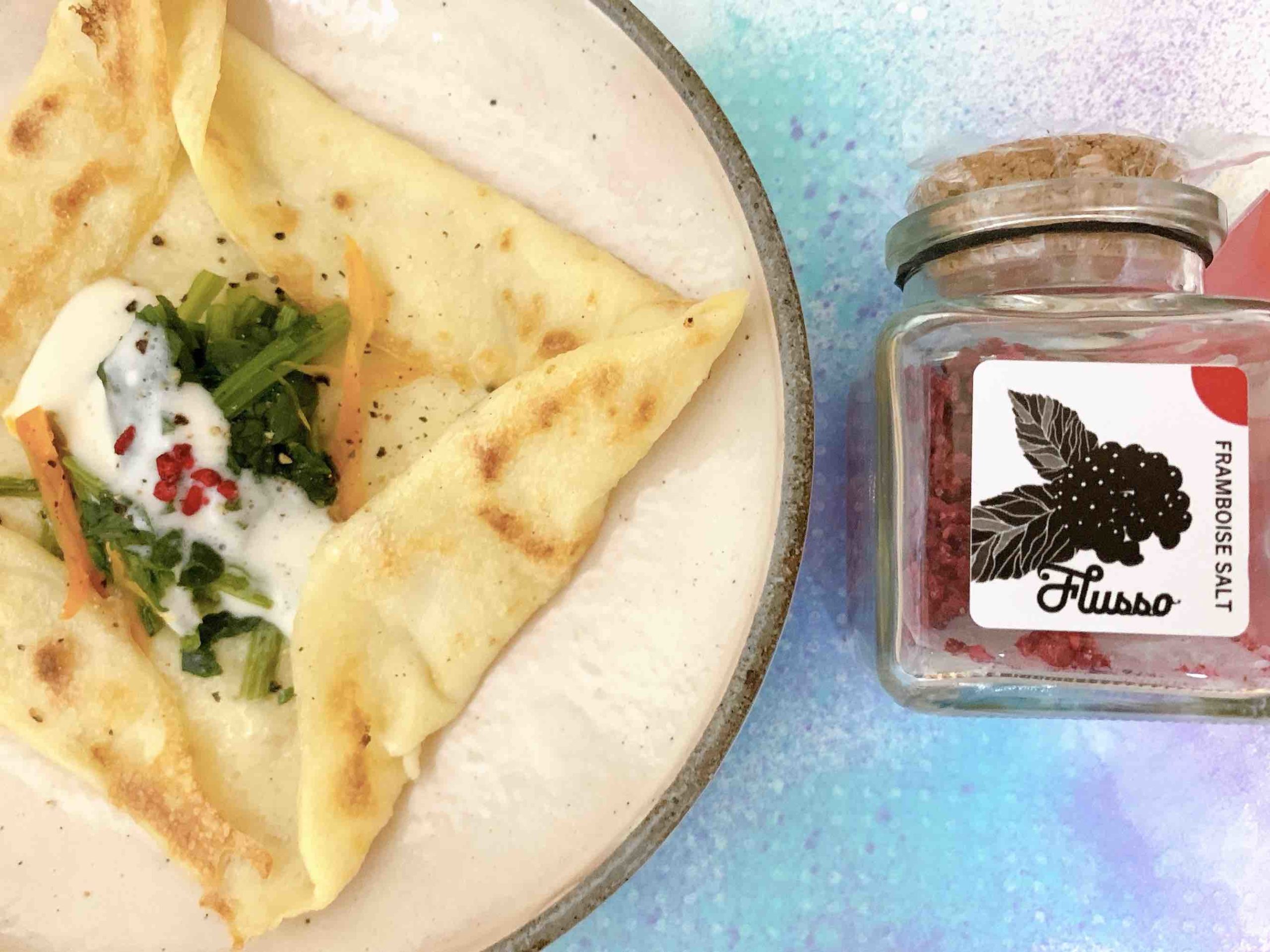 また、また、生地の塩気はあえてつけていないので、最後の仕上げでFlussoフルーツソルトをトッピングしてください。