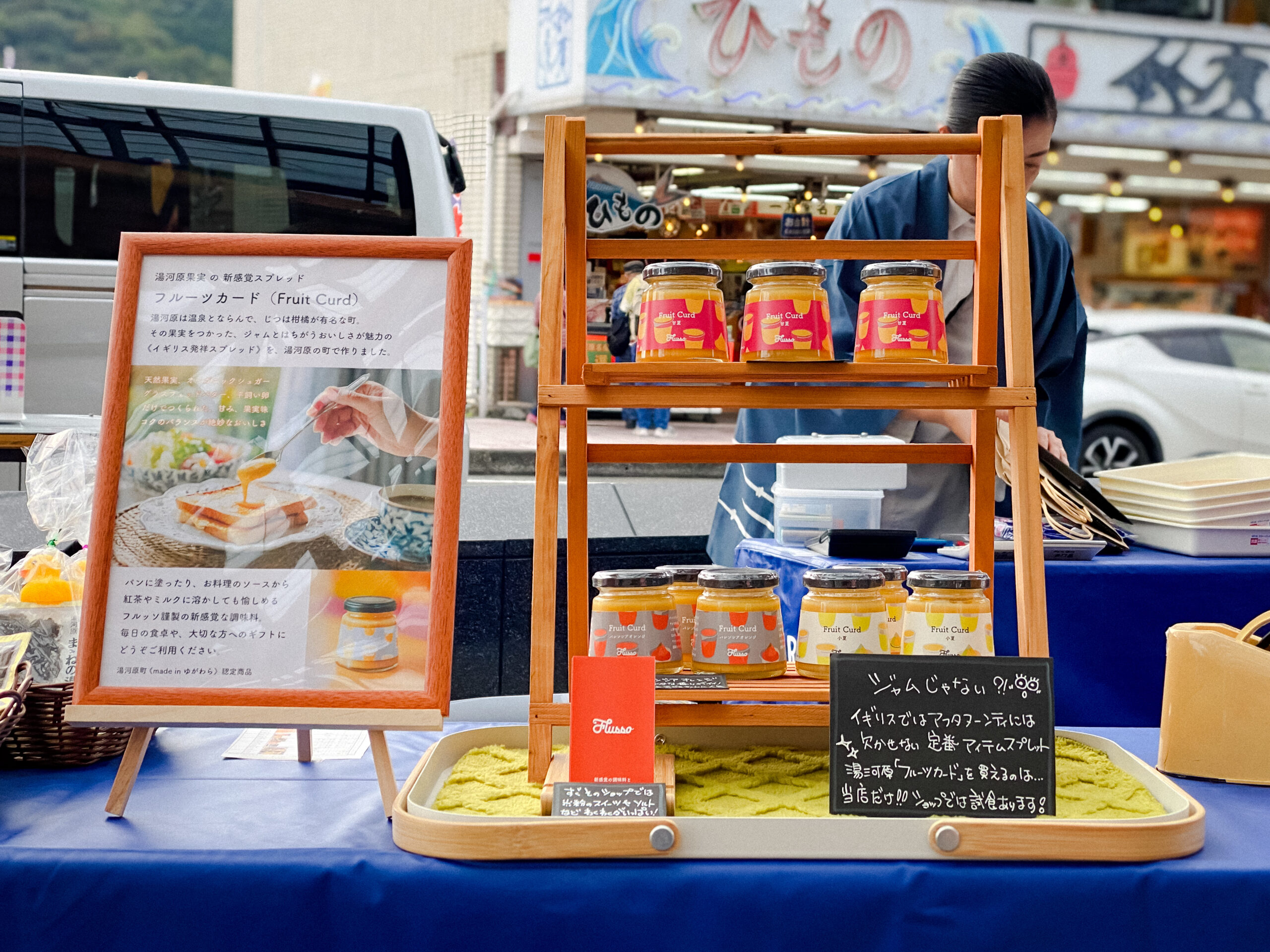 町役場と観光協会のブースでは湯河原の特産品と一緒に私たちのフルーツカードも並び、多くの方に手に取っていただけました。いつもより賑やかな駅前で、イベントは大盛況のうちに終了。